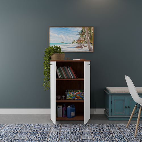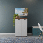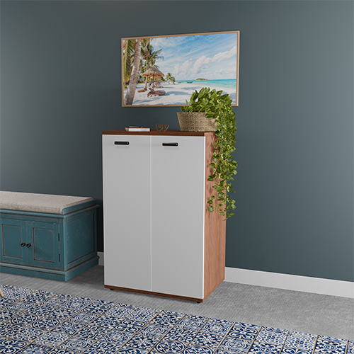 Modern Two-Door Storage Cabinet. Elevate your home’s aesthetic with this beautifully designed Modern Four-Door Storage Cabinet, blending sleek contemporary styling with practical storage solutions. This stunning piece features a clean, minimalist silhouette that perfectly complements both modern and transitional interior styles. With its crisp white doors and contrasting rich walnut finish on the top and sides, this cabinet brings warmth, elegance, and visual interest to any space — whether placed in the entryway, living room, dining area, or home office. Behind the four smoothly opening doors is ample concealed storage space, ideal for organizing a variety of household items. Use it to store shoes, books, tableware, linens, or office supplies — keeping your living area clutter-free and organized. Adjustable internal shelving allows you to customize the layout according to your storage needs.
